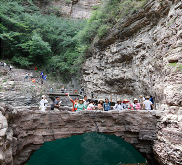 中午12點到達目的地,休整用餐后,開始游覽大峽谷景觀—景景相連,山靈水秀的谷中之谷桃花谷和擁有壯美風(fēng)光、百里畫廊之稱的太行天路。桃花谷內(nèi)黃龍?zhí)?、飛龍峽瀑布、飛龍峽棧道、九連瀑等景點珠聯(lián)璧合,顯示出深峽藏秀的悠遠意境。“太行天路”景區(qū)位于太行山之巔,全長約30km,一路望去,峽谷深邃、巖壁峭立,仿佛鬼斧神工,大氣磅礴。